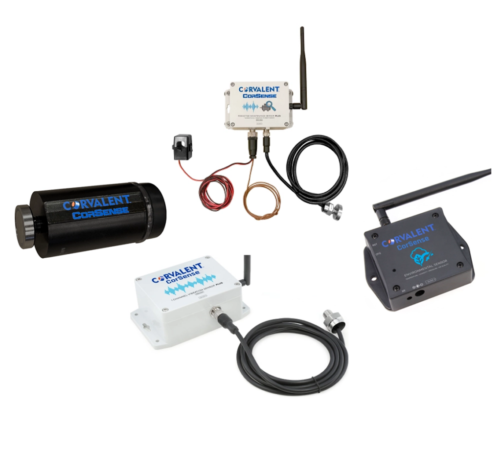 Built with a rugged case and able to withstand harsh industrial environments, these sensors are all tested to ISO standards. When paired with CorGateway, sensors gather and transmit data securely to a Corvalent CorEdge computer anywhere from 2 to 28 miles away.
